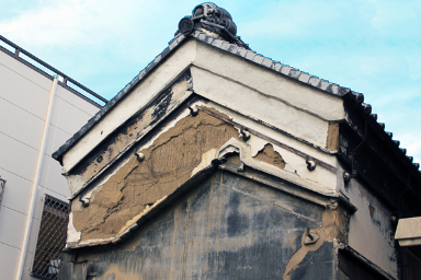 地震などの災害で土台からだめにならない限り、壁などの部分をその都度、修復していくことで孫の代までも受け継いでいける建物なのです。白壁などが落ちてもそれが、その土蔵の終わりではありません。